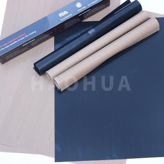 The PTFE fiberglass oven mat is made of food grade silicone material with built-in fiberglass reinforcement. It can be made in various shapes and thicknesses