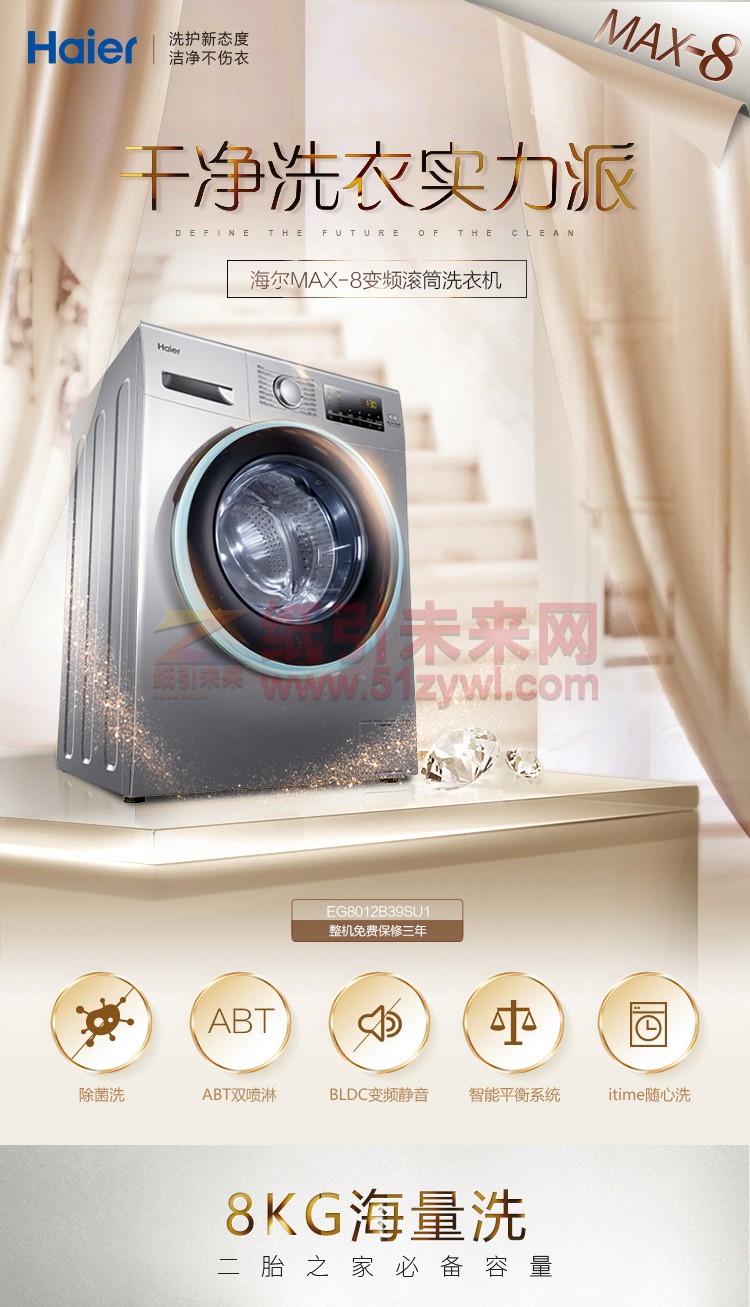 積分商城 > 海爾 8KG變頻滾筒洗衣機 全自動 防霉抗菌窗墊 防菌率99%