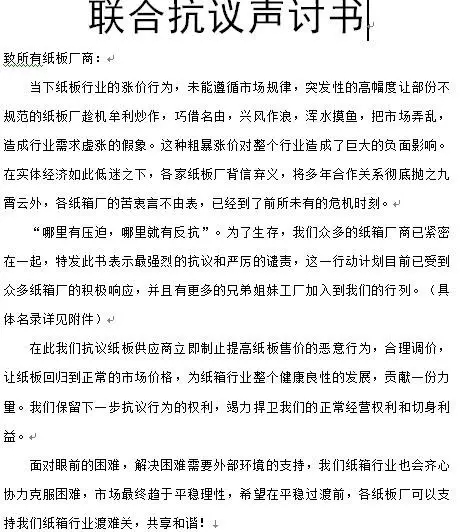 會議起草了一分《致所有紙板廠商》的公開信,向上游紙板行業明確地表達了與會企業的訴求與立場。