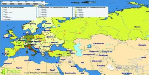 圖2 生活用紙產(chǎn)能分布,接近歐洲人口密度分布(點擊查看大圖)