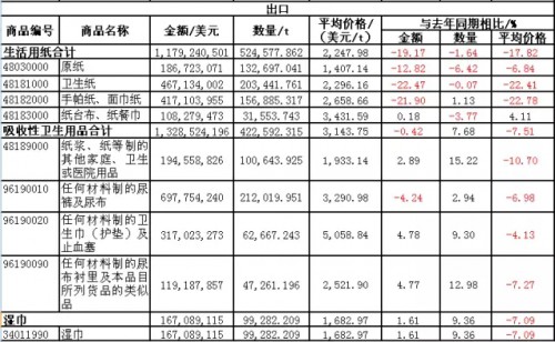 生活用紙出口量價齊降,出口額和平均價格呈現兩位數的下降。可見,生活用紙的國際市場增長乏力,全球市場供過于求的情況并未好轉,企業開拓國際市場面臨更加激烈的競爭,形勢仍然嚴峻。
