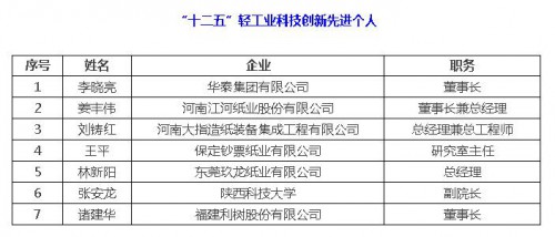 作為輕工行業中的重要支柱產業,制漿造紙行業在此次評選中也表現不俗。華泰集團有限公司、山東泉林紙業有限責任公司等五家企業獲先進集體稱號;華泰集團有限公司董事長李曉亮、河南江河紙業股份有限公司董事長兼總經理姜豐偉等七人獲先進個人稱號。詳細名單如下: