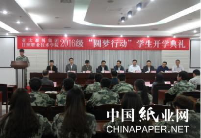 中國紙業網10月25日訊:10月21日,亞太森博集團公益助學項目“圓夢行動”2016級新生開學典禮在日照職業技術學院舉行,南京林業大學輕工科學與工程學院院長張輝,日照開發區黨工委委員、管委會副主任張堂修,日照市外僑辦副主任張鋒,日照市教育局副局長胡尊良,日照職業技術學院黨委書記何子安,日照職業技術學院副院長韓振,日照職業技術學院商學院院長徐原,