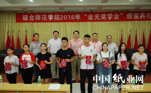 瓊臺(tái)師范學(xué)院是國(guó)家教育部批準(zhǔn)成立的全日制普通高等學(xué)校,學(xué)校前身為建于1705年的海南瓊臺(tái)書(shū)院,迄今已有300多年歷史,為海南的基礎(chǔ)教育事業(yè)培養(yǎng)了大量?jī)?yōu)秀人才。為支持海南基礎(chǔ)教育的建設(shè),金海漿紙與金光助學(xué)與環(huán)保基金會(huì)出資在瓊臺(tái)師范學(xué)院設(shè)立“金光獎(jiǎng)學(xué)金”,承諾自2010學(xué)年-2020學(xué)年,每年出資15萬(wàn)元,共計(jì)出資150萬(wàn)元,用以獎(jiǎng)勵(lì)品學(xué)兼優(yōu)的師范生。目前已連續(xù)實(shí)施六年,累計(jì)出資90萬(wàn)元,共有690名學(xué)生獲得了“金光獎(jiǎng)學(xué)金”。