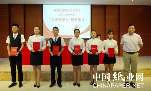 為了加強海南經貿職業(yè)技術人才培養(yǎng),金海漿紙與金光助學與環(huán)保基金會出資設立“海南經貿職業(yè)技術學院金光獎學金”,承諾2009學年-2019學年,每年出資20萬元,共計200萬元,用于資助和獎勵海南經貿職業(yè)技術學院品學兼優(yōu)、家庭經濟條件困難的學生順利完成學業(yè)。目前已連續(xù)實施七年,累計出資140萬元,共有1050名學生獲得了“金光獎學金”。