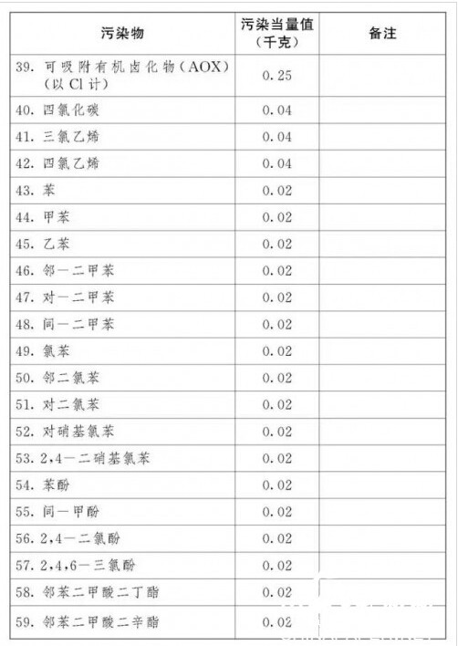 應(yīng)稅污染物和當(dāng)量值表