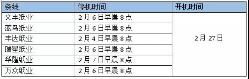 近日,浙江新勝大控股集團有限公司發布春節停機計劃,本次停機涉及旗下6家紙廠,停機時間從2月4日開始至2月27日,停機時間最長達23天。