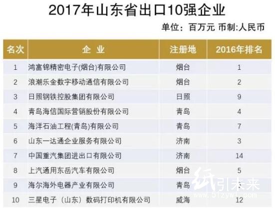 核心提示:  紙引未來網訊 日前,濟南海關發布《2017年山東省外貿百強企業發展報告》,報告顯示:2017年,我國外貿進出口總值27.8萬億元