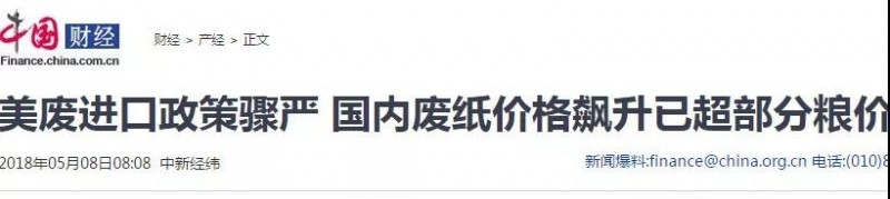 而美廢監(jiān)管政策的收緊,使得國內(nèi)市場(chǎng)的廢紙價(jià)格一漲再漲,達(dá)到每噸3000元的價(jià)格水平、相當(dāng)于每斤1.5元,這幾乎超過了小麥的價(jià)格。目前,華北新小麥價(jià)格上市也不過是1.1元每斤左右。