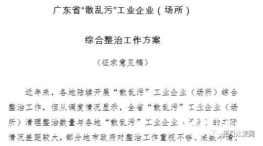 此外,根據《廣東省“散亂污”工業企業(場所)綜合整治工作方案(征求意見稿)》要求,廣東省將全面排查摸清全省“散亂污”工業企業(場所)底數,按照停產關閉、整合搬遷、整改提升的方式實施分類整治。