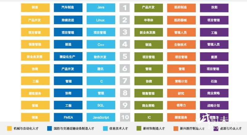 ▲制造業(yè)對(duì)不同類型人才的技能需求