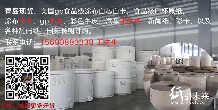青島現貨,美國食品級gp涂布白芯白卡,gp口杯原紙,彩色新聞紙,日本彩膠,westrock涂布牛卡,白掛面牛卡,gp白.本色牛皮,信封牛皮,彩色牛皮,汽車濾芯紙等國外各種亂碼紙,需要聯系15690893338王先生,微信同步