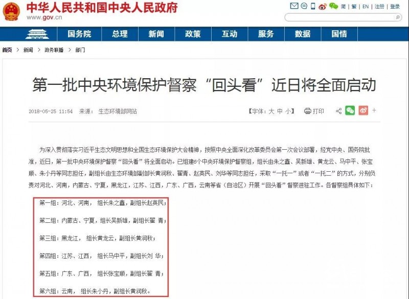 5月下旬至6月上旬,第一批中央環境保護督察“回頭看”全面啟動,河北、河南、江蘇、江西、廣東等10省遭遇嚴查。