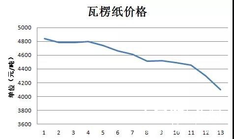 紙引未來網訊 經過短暫而微弱的反彈后,2018年包裝原紙的價格就一降再降。根據統計局數據,從2018年7月中旬開始,高強瓦楞紙的市場價格已經連續14周持續下降。繼8月下旬跌破4500元/噸關卡后,國慶期間瓦楞紙價格暴跌200元/噸,并正式沖擊4000元/噸。