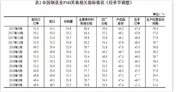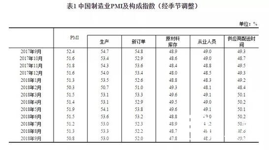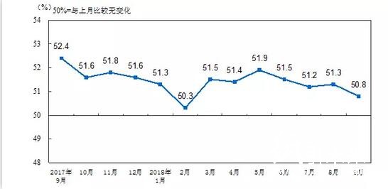 從數據中,我們可以明顯看到17年9月以來,我國制造業的PMI指數一直是呈波動下降態勢的。而在九月,制造業的PMI指數僅為50.8。要知道如果PMI指數接近于收縮指數(低于50)是十分危險的!
