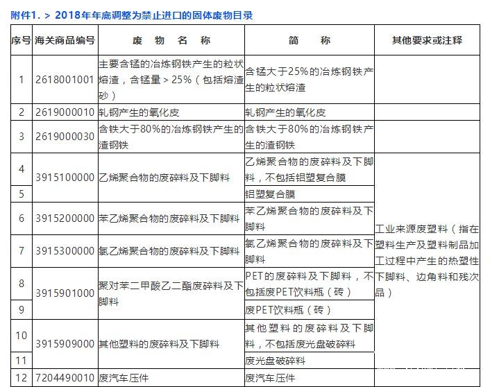 附件:1.2018年年底調整為禁止進口的固體廢物目錄