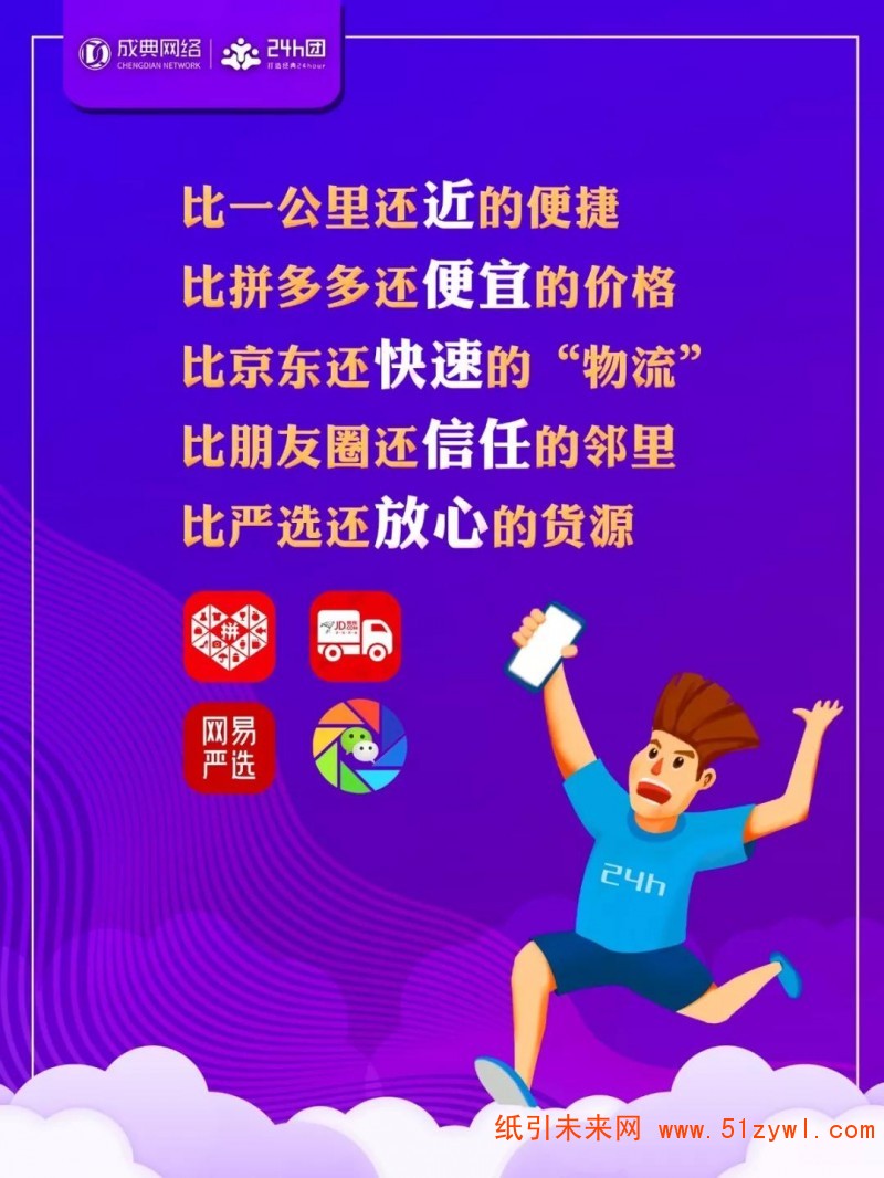 鄰里配送:當你沒時間去小區樓下拿商品,24h團會匹配鄰里剛好也要去拿商品 的朋友可以幫你順帶上來。為忙碌的鄰里有更多交流的機會,擺脫冰冷的城市鄰里關系。為在城市生活的你多一份朋友多一分溫暖。