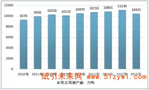 2013-2018年我國紙及紙制品產量統計表:萬噸