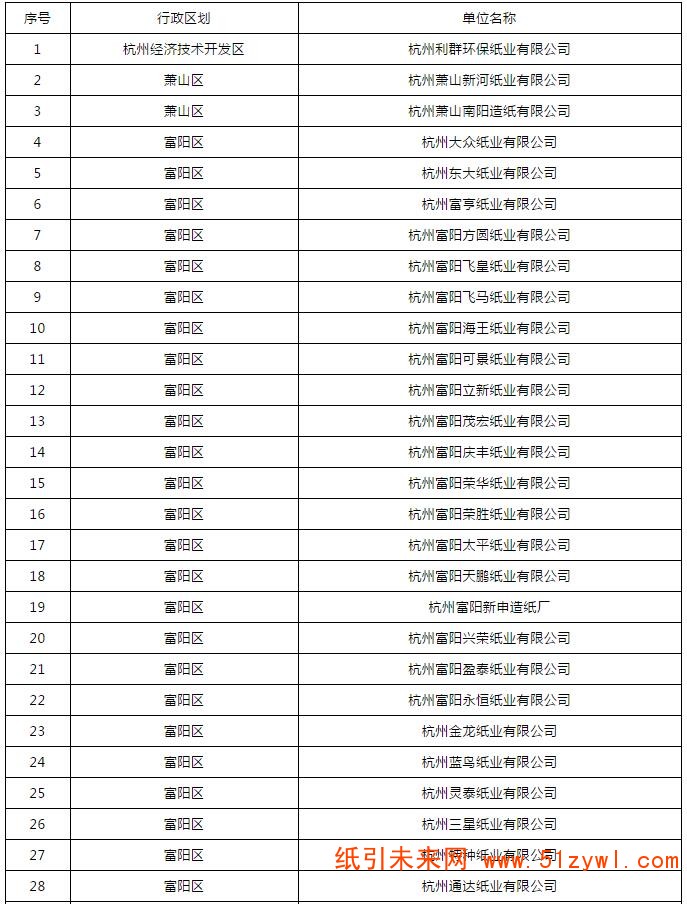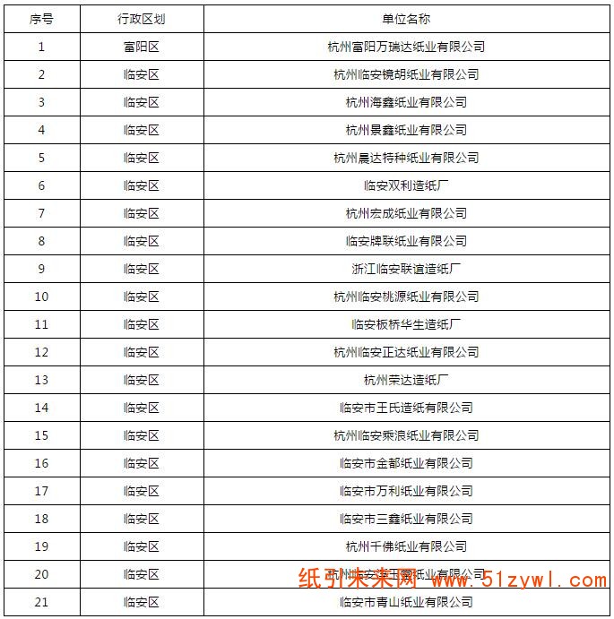 在4月底公布的杭州市重點排污單位名錄中,杭州市共確定2019年重點排污單位709家,其中造紙相關企業64家,加上此次補錄的21家,造紙企業的總數量達到85家。首批名單如下: