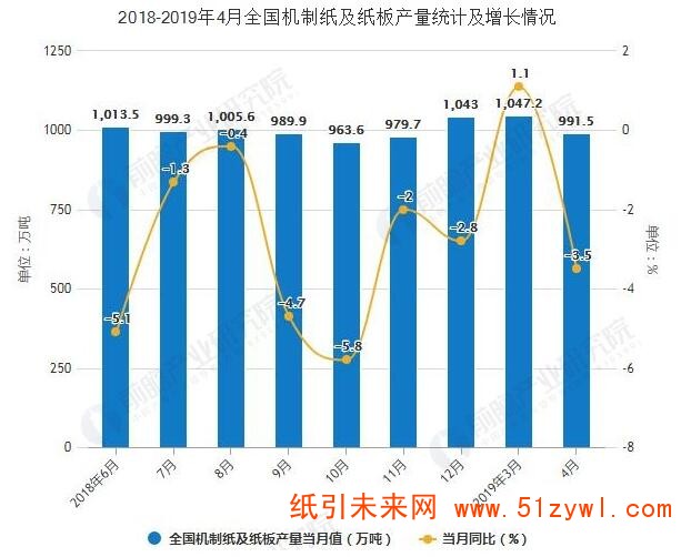 2019年4月全國機制紙及紙板產量累計超3700萬噸