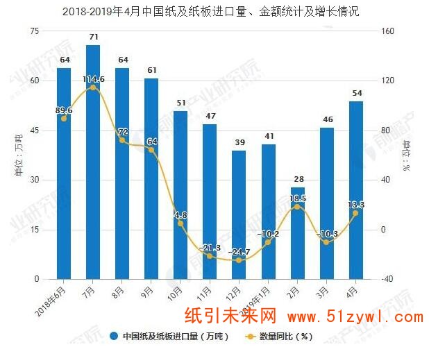 2019年4月中國紙及紙板進口量累計達到170萬噸
