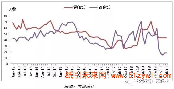 2.經(jīng)銷商庫存低位:經(jīng)過2018年底的庫存消化,經(jīng)銷商庫存下滑較快,而且紙廠一直供應(yīng)不足,導(dǎo)致補(bǔ)庫無法完成,庫存始終處于低位,進(jìn)入2019年經(jīng)銷商庫存持續(xù)下降。