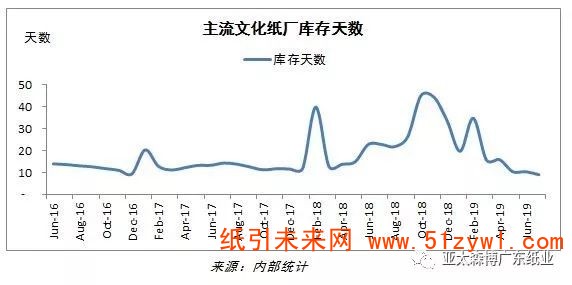 1.紙廠庫存低位:紙廠由于一直供應(yīng)緊張,紙廠庫存從2018年底的高位開始逐漸回落,7月主流紙廠庫存已經(jīng)降低到10天左右,目前仍處于供不應(yīng)求的狀態(tài)。