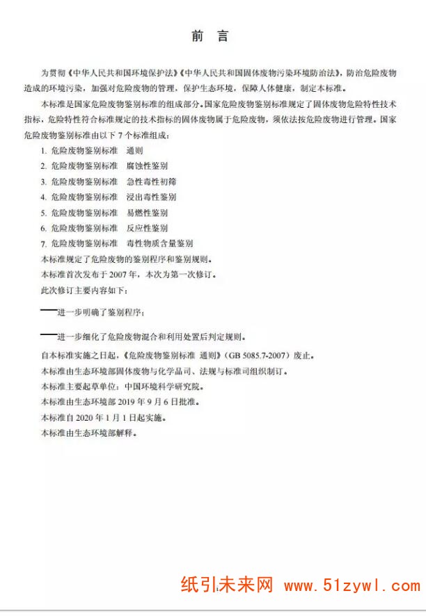 紙引未來網(wǎng)迅 為貫徹防治污染,保護(hù)和改善生態(tài)環(huán)境,2019年11月7日,生態(tài)環(huán)境部與國家市場監(jiān)督管理總局聯(lián)合發(fā)布了《危險(xiǎn)廢物鑒別標(biāo)準(zhǔn)通則》(GB 5085.7-2019)。