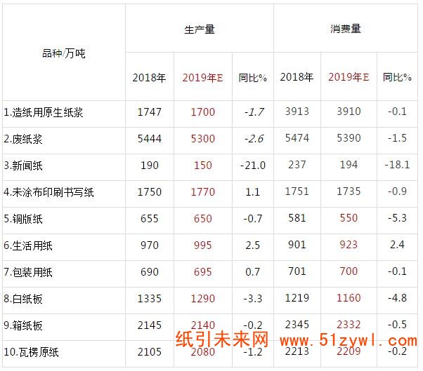 根據上述數據和分析,我們預計2019年全年國內制漿和造紙生產量和消費量為: