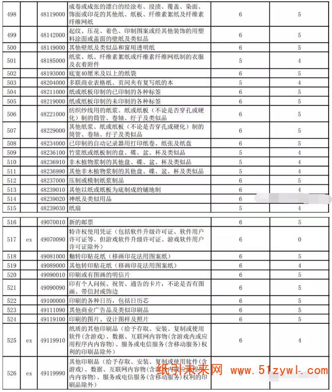 在部分木材和紙制品進口暫定稅率中,筆者整理后發現,從稅則號48021010-稅則號49119990,均為與包裝印刷業密切相關的產品,比如瓦楞紙、紙板以及印刷品等,筆者選取其中具有一定代表性的產品摘錄如下: