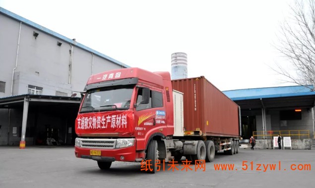 紙引未來網訊 2月6日下午,一輛載滿支援救災物資包裝生產原材料的運輸車緩緩地駛出世紀陽光紙業集團大門。這臺車的目的地是河北邢臺,距出發地約500公里,車身上的“支援救災物資生產原材料”橫幅格外醒目。