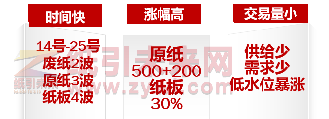 本期紙價(jià)暴漲的三個(gè)特點(diǎn):時(shí)間快、漲幅高、交易量小。