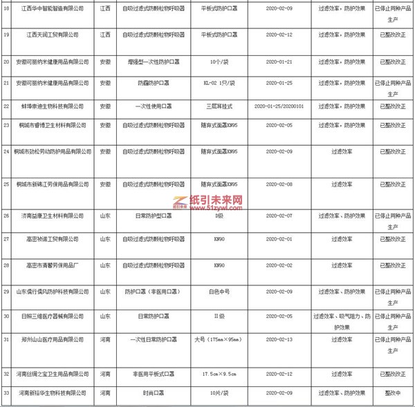 非醫(yī)用口罩質(zhì)量監(jiān)督抽查不合格批次名單