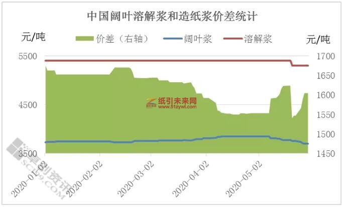 大部分溶解漿線具備轉產造紙漿能力,且轉產工藝并不復雜,一周內即可完成轉產調試時間,同時相同木片消耗量情況下,造紙漿得率更高。如圖1所示4月開始溶解漿與造紙漿價差縮小,生產造紙漿收益增加,提振漿廠轉產熱情。