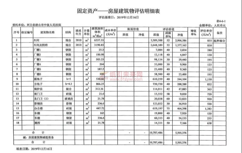1、位于玉田縣散水頭鎮散水頭村的地皮、廠房及車間措置參考價為613.54萬元;