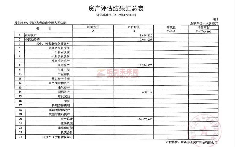 據唐山弘正資產評價有限公司評價,這次變賣的玉田縣騰達紙有限公司的資產參考價為2245.97萬元,此中: