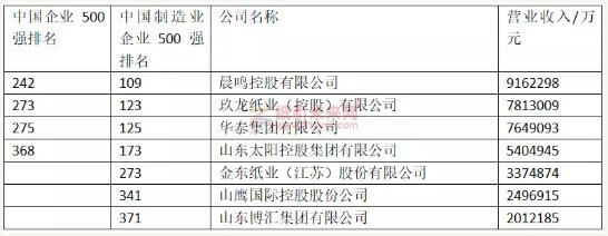 紙引未來網訊 2021年9月25日,由中國企業聯合會、中國企業家協會主辦的第20屆“2021中國500強企業高峰論壇”在吉林長春召開,會上發布了2021中國企業500強和2021中國制造業企業500強榜單。其中共有4家造紙企業同時入圍2021中國企業500強和2021中國制造業企業500強,分別為晨鳴控股有限公司、玖龍紙業(控股)有限公司、華泰集團有限公司、山東太陽控股集團有限公司;除上述4家造紙企業外,還有3家造紙企業入圍2021中國制造業企業500強,分別為金東紙業(江蘇)股份有限公司、山鷹國際控股股份公司、山東博匯集團有限公司。