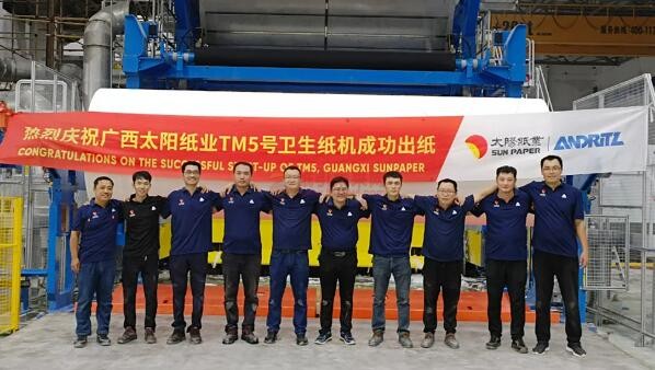 紙引未來網訊 10月15日晚,太陽紙業廣西基地再傳喜訊,公司子公司廣西太陽紙業有限公司12萬噸生活用紙項目中的5號機生活用紙生產線在廣西北海成功開機出紙。