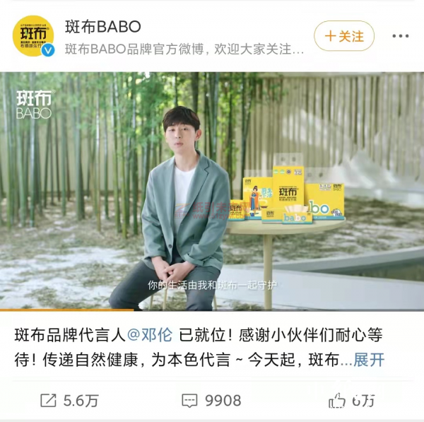 明星代言。“流量“是這個時代的關鍵詞,掌握了流量密碼也就間接獲得了關注度和銷量,受到廣大年輕人喜愛的明星藝人、動漫人物等則是解開流量密碼的鑰匙。近幾年,各大生活用紙品牌不斷地尋找契合的、國民度高的優質偶像作為自己的品牌代言人。比如維達幾個月前官宣的蔡徐坤,斑布剛公布的首位品牌代言人鄧倫等,都在微博上擁有千萬的粉絲,相應的給他們代言的紙品帶來了大批消費者,其購買能力也是數一數二的。