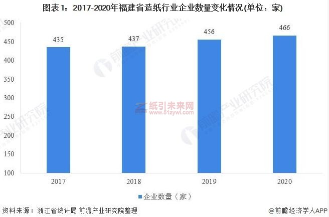 2016-2019年,福建省規模以上造紙企業數量保持平穩增長,據省統計局數據,截止2020年12月末全省造紙行業企業家數為466家,其中紙漿制造企業數4家,同比增加1家;造紙企業數134家,同比增加6家;紙制品企業數328家,同比增加3家。