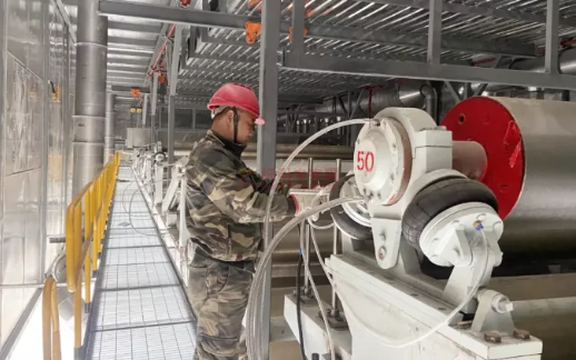 據(jù)施工負(fù)責(zé)人介紹,為加快設(shè)備安裝進(jìn)度,項(xiàng)目部倒排工期、倒逼進(jìn)度,技術(shù)人員加班加點(diǎn),整個(gè)2號(hào)箱板紙生產(chǎn)線從網(wǎng)部流送系統(tǒng)、成型設(shè)備、壓榨部脫水到在線物理指標(biāo)檢測(cè)設(shè)備、成品包裝設(shè)備全部就位,管道連接已完成100%;配電設(shè)施以及電纜連接也已全部完成;預(yù)計(jì)單機(jī)調(diào)試一周左右正式開機(jī)生產(chǎn)。