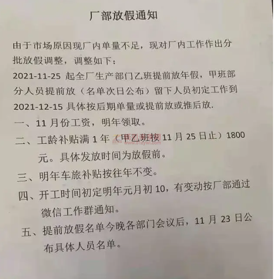 疫情零星爆發、下游行情慘淡,不少工廠訂單量驟減。多以老客戶翻單訂單、小批量為主,很多工廠訂單稀少,為了節約成本,會提前開啟放假模式。受疫情和市場的影響,今年的放假似乎比之前來得要早一些。