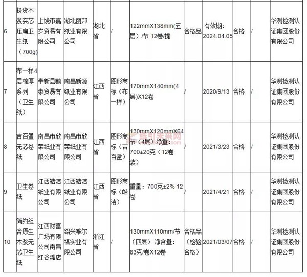 紙引未來網(wǎng)訊 據(jù)江西省市場監(jiān)督管理局網(wǎng)站2021年12月31日消息,2021年,江西省市場監(jiān)督管理局對全省衛(wèi)生紙產(chǎn)品質(zhì)量進行了監(jiān)督抽查。本次抽查了10批次衛(wèi)生紙產(chǎn)品,經(jīng)檢驗,全部合格。