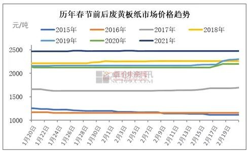 一歷年春節(jié)后廢黃板紙價(jià)格走勢