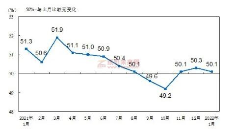 1月份,中國制造業(yè)采購經理指數(PMI)為50.1%,比上月回落0.2個百分點,高于臨界點,制造業(yè)擴張步伐有所放慢。