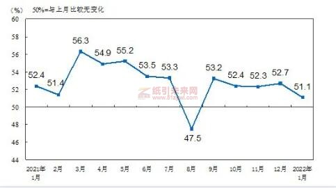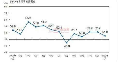 紙引未來網訊 近日,國家統(tǒng)計局服務業(yè)調查中心和中國物流與采購聯(lián)合會發(fā)布了1月份中國采購經理指數。面對復雜嚴峻的經濟環(huán)境和疫情散發(fā)等考驗,我國經濟在1月總體延續(xù)恢復發(fā)展態(tài)勢,但景氣水平有所回落。制造業(yè)采購經理指數、非制造業(yè)商務活動指數和綜合PMI產出指數分別為50.1%、51.1%和51.0%,均保持在擴張區(qū)間,但低于上月0.2、1.6和1.2個百分點。
