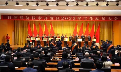 2月10日上午,日照市經濟技術開發區在管委駐地召開全區2022年工作動員大會,會上對2021年度經濟發展貢獻重點企業進行了表揚通報,公司對日照經開區經濟社會發展貢獻最大,以位列第一的成績被授予年度“經濟發展突出貢獻獎”,日照經開區工委書記、管委主任孫立親自為公司董事長、總經理陳小榮頒發榮譽匾額。
