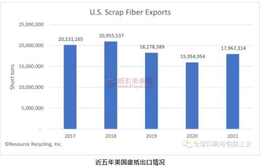 另外,根據(jù)美國(guó)最新公布的數(shù)據(jù)顯示,2021年,美國(guó)對(duì)中國(guó)的廢紙出口繼續(xù)大幅下降,但世界其他地區(qū)的進(jìn)口量彌補(bǔ)了這一差距。而美國(guó)廢塑料的出口量則持續(xù)了多年的下降趨勢(shì)。數(shù)據(jù)顯示,2021年美國(guó)公司出口了1797萬(wàn)噸廢紙(包括紙張和紙板),高于上年的1595萬(wàn)噸,增幅為13%。美國(guó)在2021年出口了12.1億磅廢塑料,低于前一年的13.8億磅,或減少了約12%。
