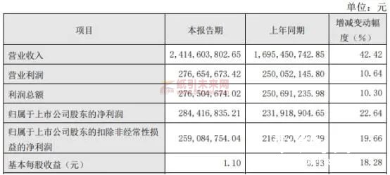 經營情況:2021年度公司實現營業收入為241,460.38萬,同比增長42.42%;營業利潤為27,665.47萬,比上年同期增長10.64%;利潤總額為27,650.47萬,比上年同期增長10.30%;2021年歸屬于上市公司股東的凈利潤為28,441.68萬,比上年同期增長22.64%;2021年歸屬于上市公司股東的扣除非經常性損益的凈利潤為25,908.48萬,比上年同期增長19.66%;2021年度公司實現基本每股收益約為1.10,比上年同期增長18.28%。
