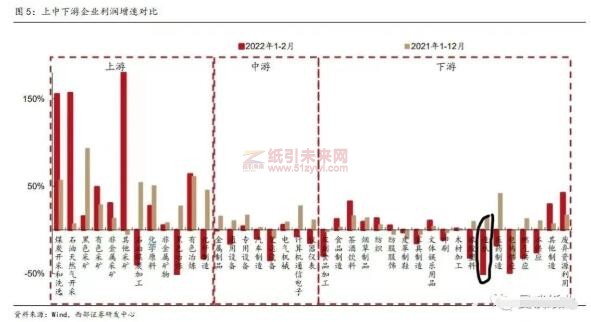 1-2月份,在41個工業大類行業中,21個行業利潤總額同比增長,19個行業下降,1個行業減虧。造紙和紙制品業營業收入2226.7億元,同比增長4.7%;營業成本1966.1億元,同比增長9.1%;利潤總額65.6億元,同比減少57.7%,利潤總額增速列全部41個行業的倒數第一,下降幅度最大!